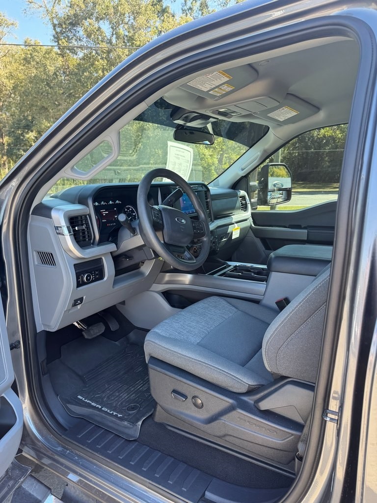 2024 Ford F-250SD XLT Gray Metallic 4WD 10-Speed Automatic Power Stroke 6.7L V8 DI 32V OHV Turbodiesel 4WD, 4-Wheel Disc Brakes, 6 Speakers, ABS brakes, Air Conditioning, All-Weather Floor Mats, Alloy wheels, AM/FM radio, AM/FM Stereo w/MP3 Player, Auto High-beam Headlights, Brake assist, Bumpers: chrome, Cloth 40/20/40 Split Bench Seat, Compass, Delay-off headlights, Driver door bin, Driver vanity mirror, Dual 68 AH/65 AGM Batteries, Dual front impact airbags, Dual front side impact airbags, Electronic Stability Control, Emergency communication system: SYNC 4 911 Assist, Engine Block Heater, Exterior Parking Camera Rear, Front anti-roll bar, Front Center Armrest w/Storage, Front fog lights, Front reading lights, Fully automatic headlights, FX4 Off-Road Package, GVWR: 10,000 lb Payload Package, Heated door mirrors, Hill Descent Control, Illuminated entry, Low tire pressure warning, Off-Road Specifically Tuned Shock Absorbers, Order Code 603A, Outside temperature display, Overhead airbag, Overhead console, Panic alarm, Passenger door bin, Passenger vanity mirror, Power door mirrors, Power driver seat, Power steering, Power windows, Privacy Glass, Rear reading lights, Rear step bumper, Remote keyless entry, Remote Start System, Speed control, Split folding rear seat, Steering wheel mounted audio controls, SYNC 4, Tachometer, Telescoping steering wheel, Tilt steering wheel, Traction control, Trip computer, Turn signal indicator mirrors, Unique FX4 Off-Road Box Decal, Variably intermittent wipers, Wheels: 18" Sparkle Silver Painted Cast Aluminum.